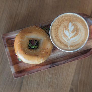 Fresh wood roasted coffee, traditional Italian espresso, fresh and local pastries, made-to-order bagel sandwiches,